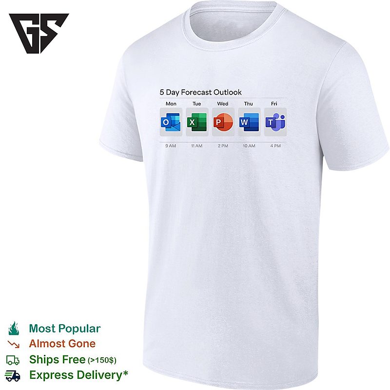 Join the movement with our 5 Day Forecast Outlook Mon Excel Tue Powerpoint Wed Word Thu Teams Fri T-Shirt – the sports tee that’s taking social media by storm! This trending design captures the energy and passion that’s got everyone talking. Whether you’re at the game, hitting the gym, or just showcasing your athletic style, this viral sensation is your ticket to staying ahead of the curve.