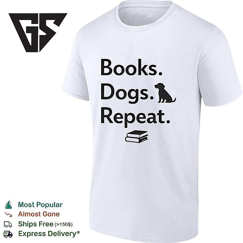 Join the movement with our Books Dogs Repeat Funny Dog T-Shirt – the sports tee that’s taking social media by storm! This trending design captures the energy and passion that’s got everyone talking. Whether you’re at the game, hitting the gym, or just showcasing your athletic style, this viral sensation is your ticket to staying ahead of the curve.