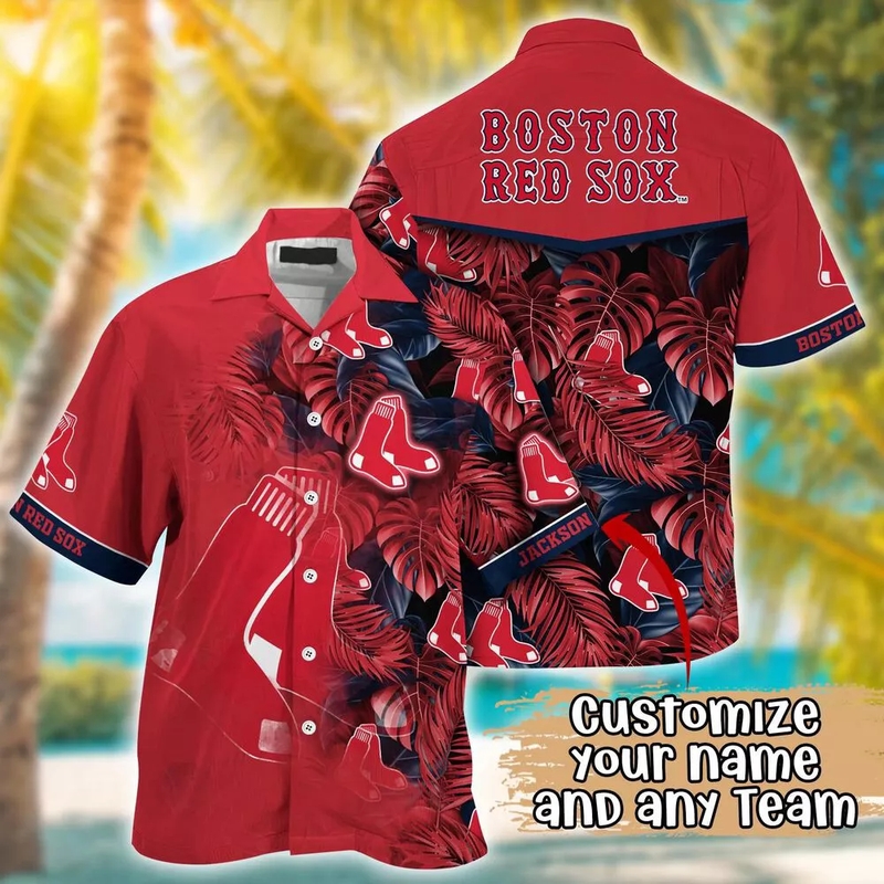 Show your team spirit with tropical flair in our Boston Red Sox Custom Leaf Pattern Hawaiian Shirt! This vibrant Hawaiian shirt showcases Boston Red Sox colors and logos amid island-inspired designs. Perfect for game days or casual wear, it’s the ultimate way to combine comfort, style, and fan pride wherever you go.