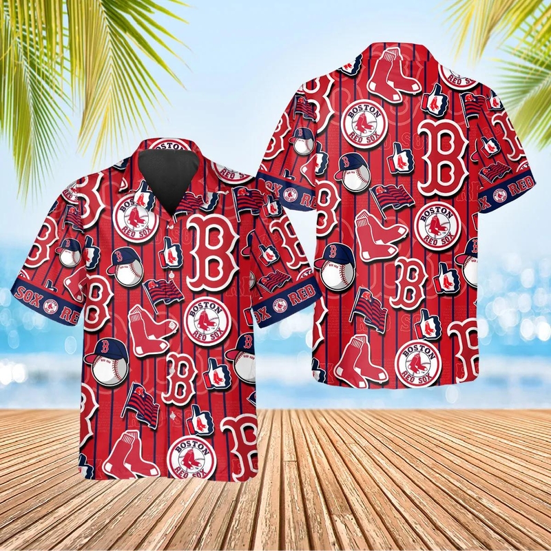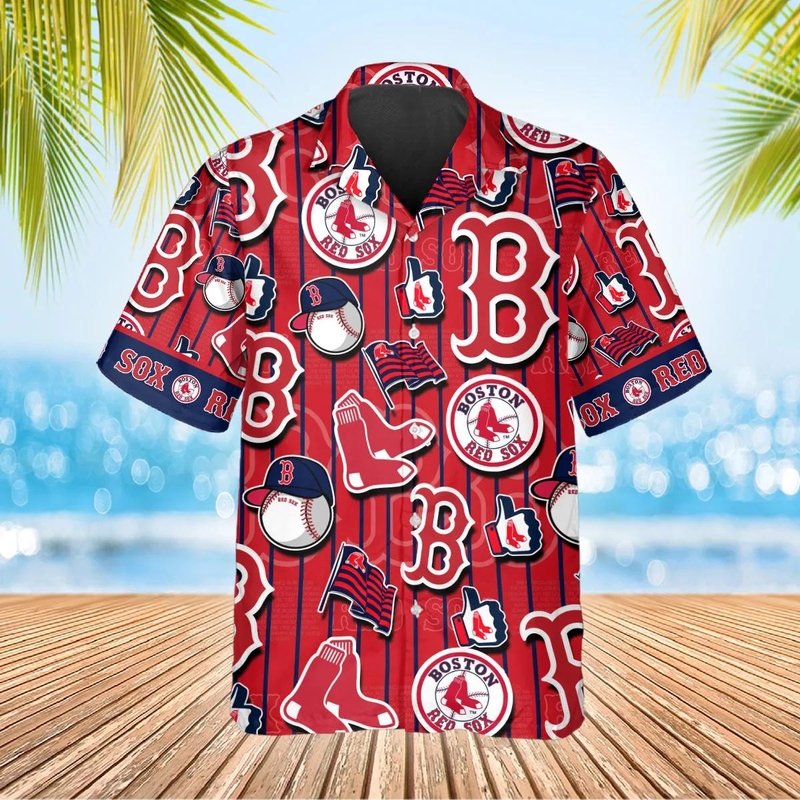 Show your team spirit with tropical flair in our Boston Red Sox Pinstripe Logo Collage Hawaiian Shirt! This vibrant Hawaiian shirt showcases Boston Red Sox colors and logos amid island-inspired designs. Perfect for game days or casual wear, it’s the ultimate way to combine comfort, style, and fan pride wherever you go.