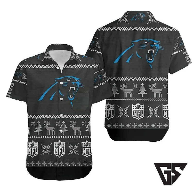 Show your team spirit with tropical flair in our Carolina Panthers Ugly Christmas Sweater Hawaiian Shirt! This vibrant Hawaiian shirt showcases Carolina Panthers colors and logos amid island-inspired designs. Perfect for game days or casual wear, it’s the ultimate way to combine comfort, style, and fan pride wherever you go.