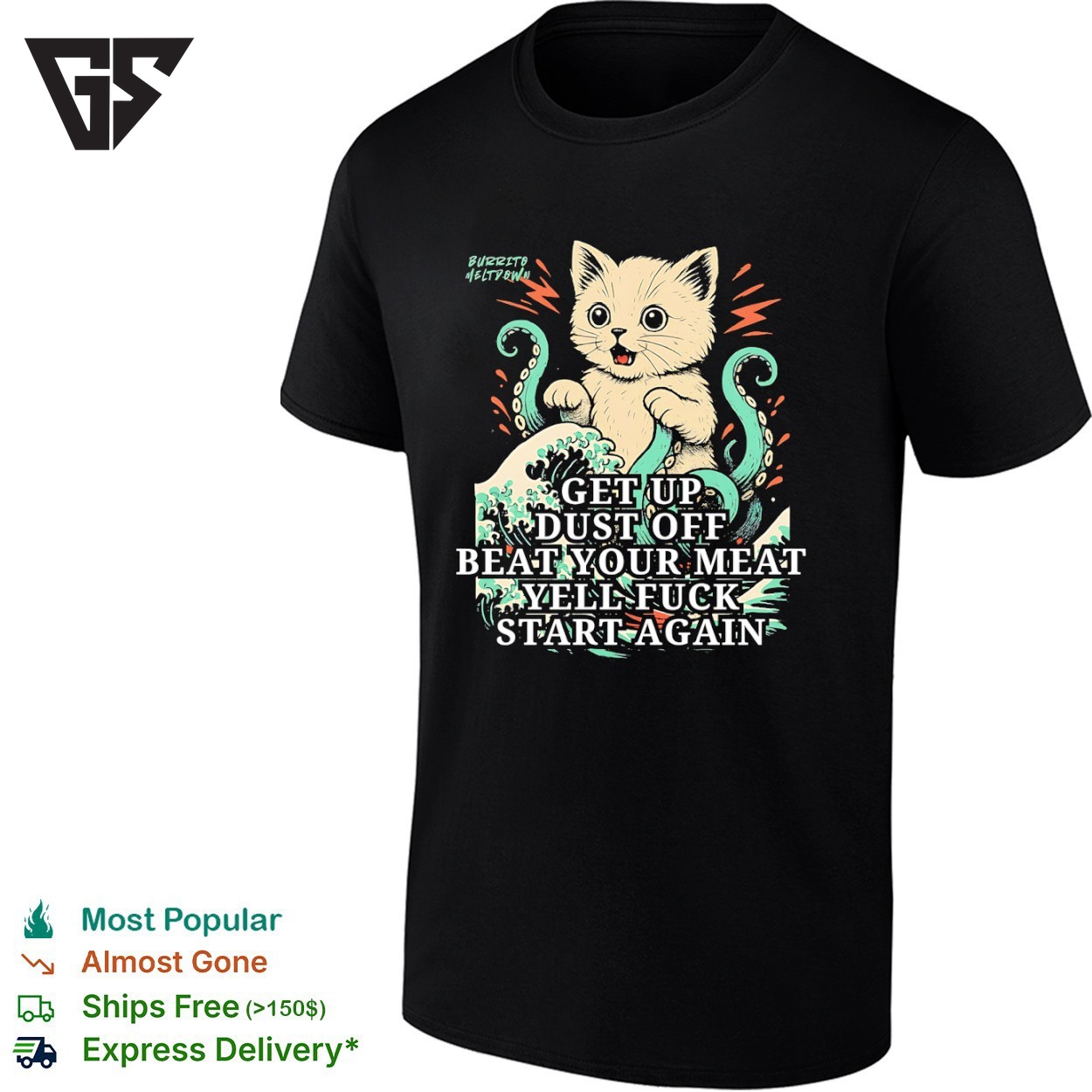 Be the first to review “Cat And An Octopus Get Up Dust Off Beat Your Meat Yell Fuck Start Again T-Shirt” Cancel reply