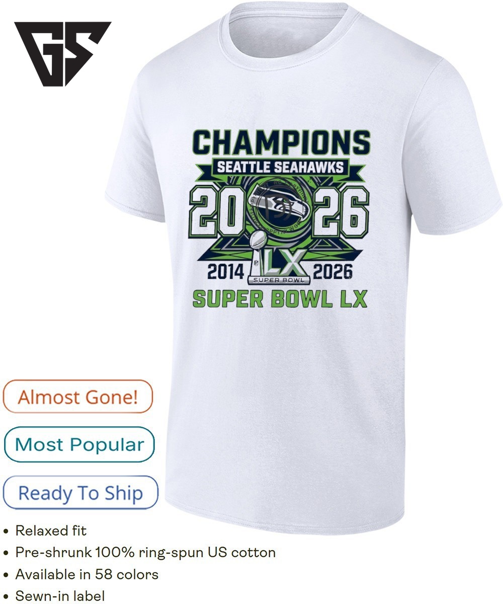 Champions Seattle Seahawks 2014-2026 Super Bowl Lx T-Shirt