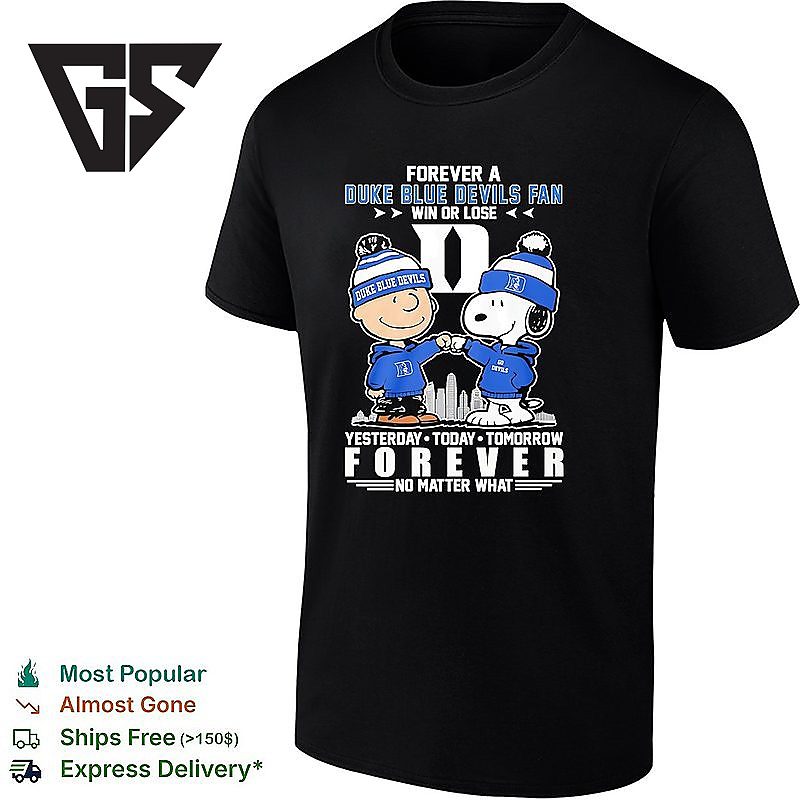 Join the movement with our Charlie Brown & Snoopy Forever A Duke Blue Devils Fan Win Or Lose Yesterday Today Tomorrow Forever T-Shirt – the sports tee that’s taking social media by storm! This trending design captures the energy and passion that’s got everyone talking. Whether you’re at the game, hitting the gym, or just showcasing your athletic style, this viral sensation is your ticket to staying ahead of the curve.