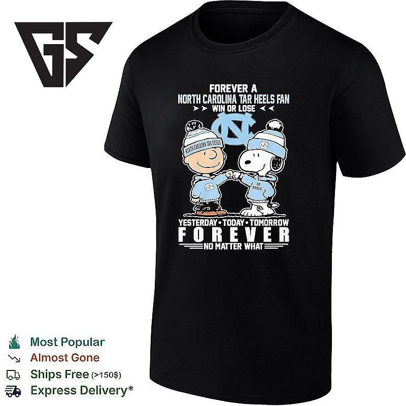 Join the movement with our Charlie Brown & Snoopy Forever A North Carolina Tar Heels Fan Win Or Lose Yesterday Today Tomorrow Forever T-Shirt – the sports tee that’s taking social media by storm! This trending design captures the energy and passion that’s got everyone talking. Whether you’re at the game, hitting the gym, or just showcasing your athletic style, this viral sensation is your ticket to staying ahead of the curve.