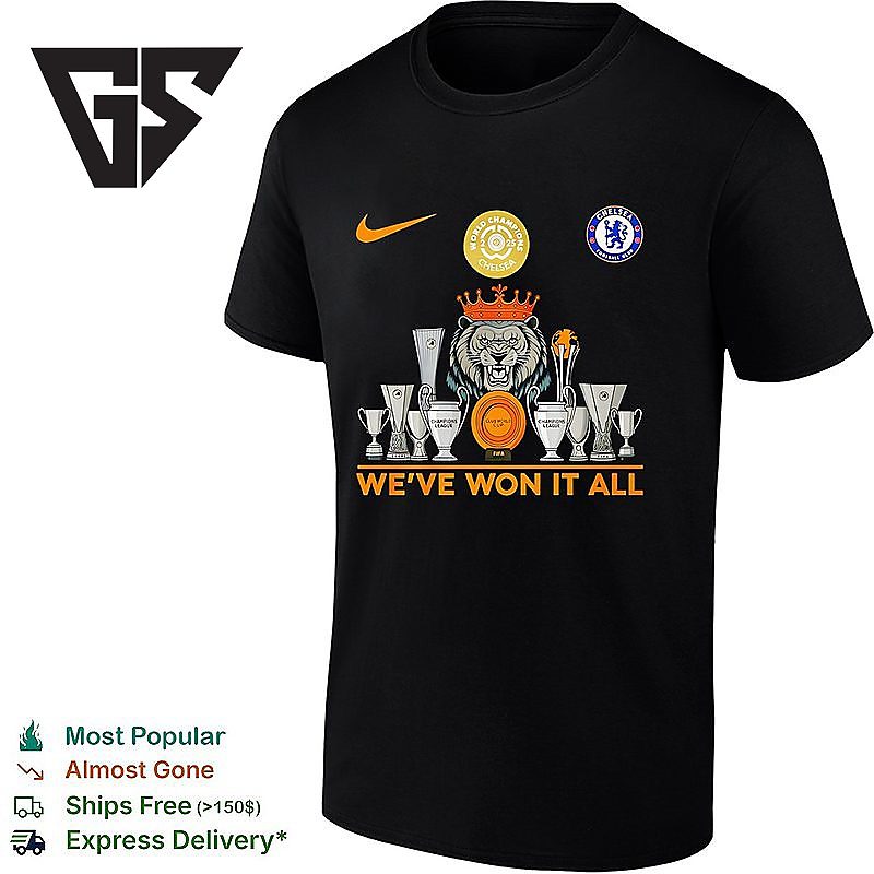 Join the movement with our Chelsea Fc We’ve Won It All Club Trophies T-Shirt – the sports tee that’s taking social media by storm! This trending design captures the energy and passion that’s got everyone talking. Whether you’re at the game, hitting the gym, or just showcasing your athletic style, this viral sensation is your ticket to staying ahead of the curve.