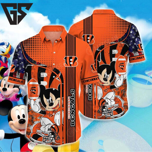Show your team spirit with tropical flair in our Cincinnati Bengals Mickey Playmaker Hawaiian Shirt! This vibrant Hawaiian shirt showcases Cincinnati Bengals colors and logos amid island-inspired designs. Perfect for game days or casual wear, it’s the ultimate way to combine comfort, style, and fan pride wherever you go.