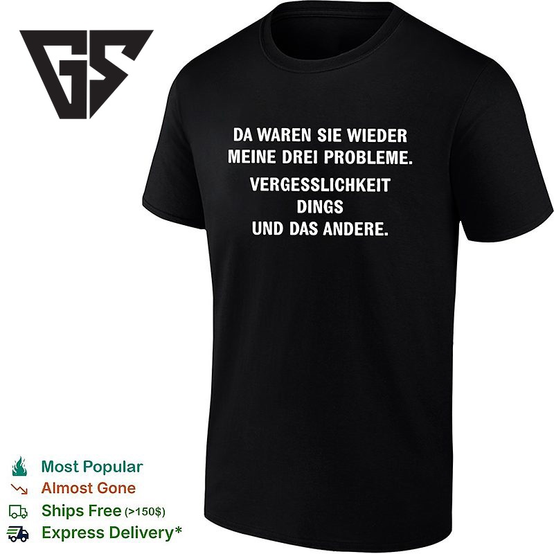 Be the first to review “Da Waren Sie Wieder Meine Drei Probleme Vergesslichkeit Dings Und Das Andere T-Shirt” Cancel reply