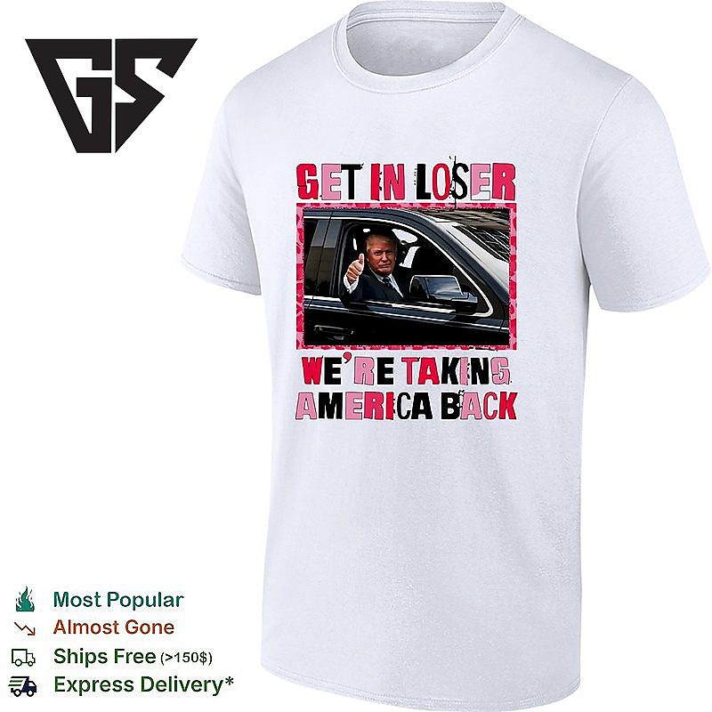 Join the movement with our Donald Trump In Car Get In Loser We’re Taking America Back T-Shirt – the sports tee that’s taking social media by storm! This trending design captures the energy and passion that’s got everyone talking. Whether you’re at the game, hitting the gym, or just showcasing your athletic style, this viral sensation is your ticket to staying ahead of the curve.