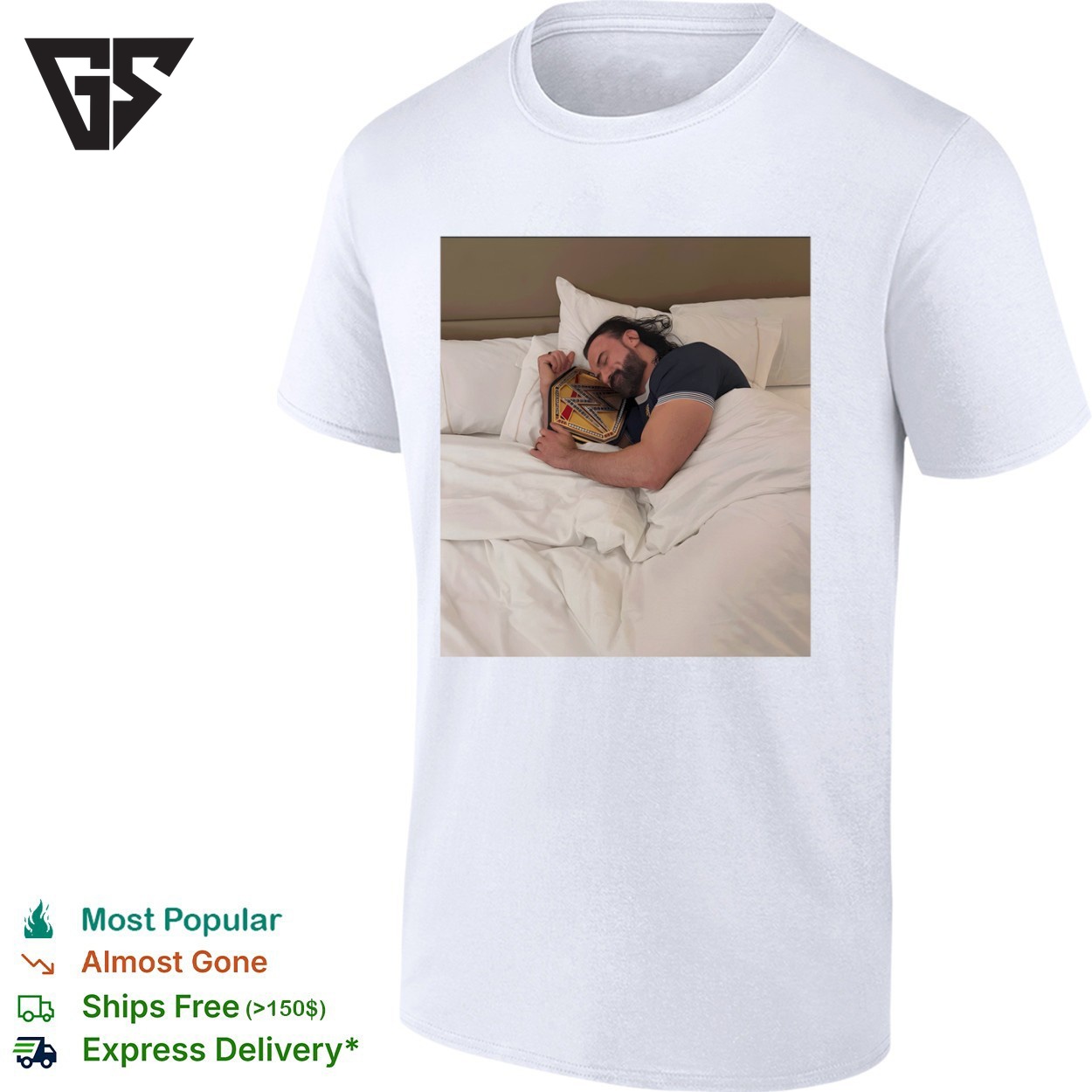 Join the movement with our Drew Mcintyre Holding Wwe Championship Belt In Bed T-Shirt – the sports tee that’s taking social media by storm! This trending design captures the energy and passion that’s got everyone talking. Whether you’re at the game, hitting the gym, or just showcasing your athletic style, this viral sensation is your ticket to staying ahead of the curve.