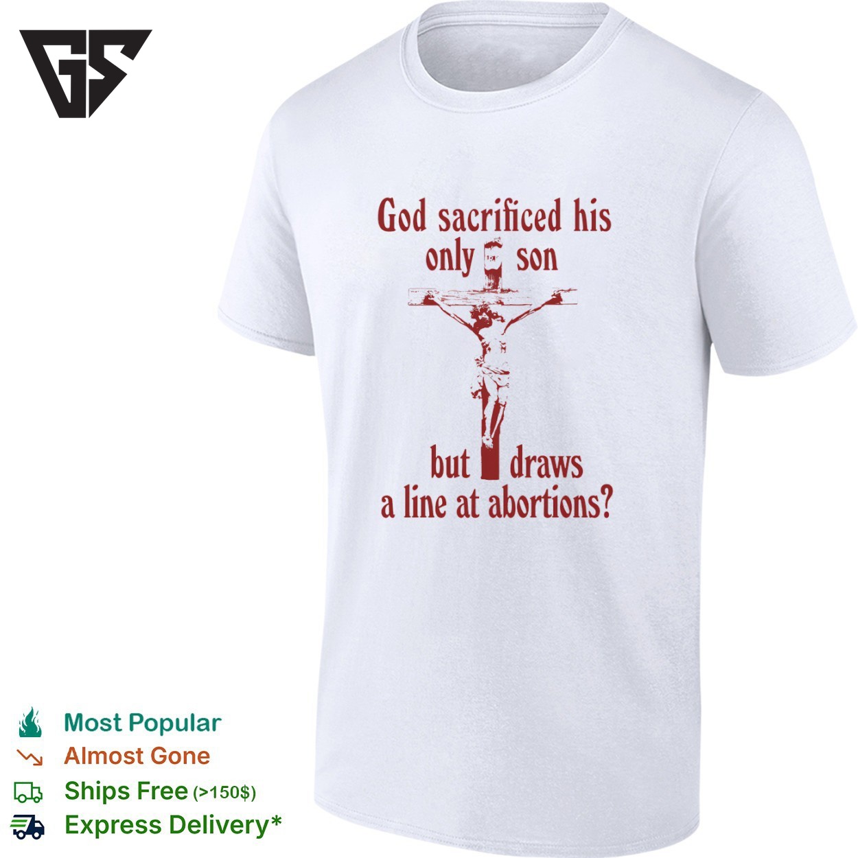 Join the movement with our God Sacrificed His Only Son But Draws The Line At Abortions T-Shirt – the sports tee that’s taking social media by storm! This trending design captures the energy and passion that’s got everyone talking. Whether you’re at the game, hitting the gym, or just showcasing your athletic style, this viral sensation is your ticket to staying ahead of the curve.