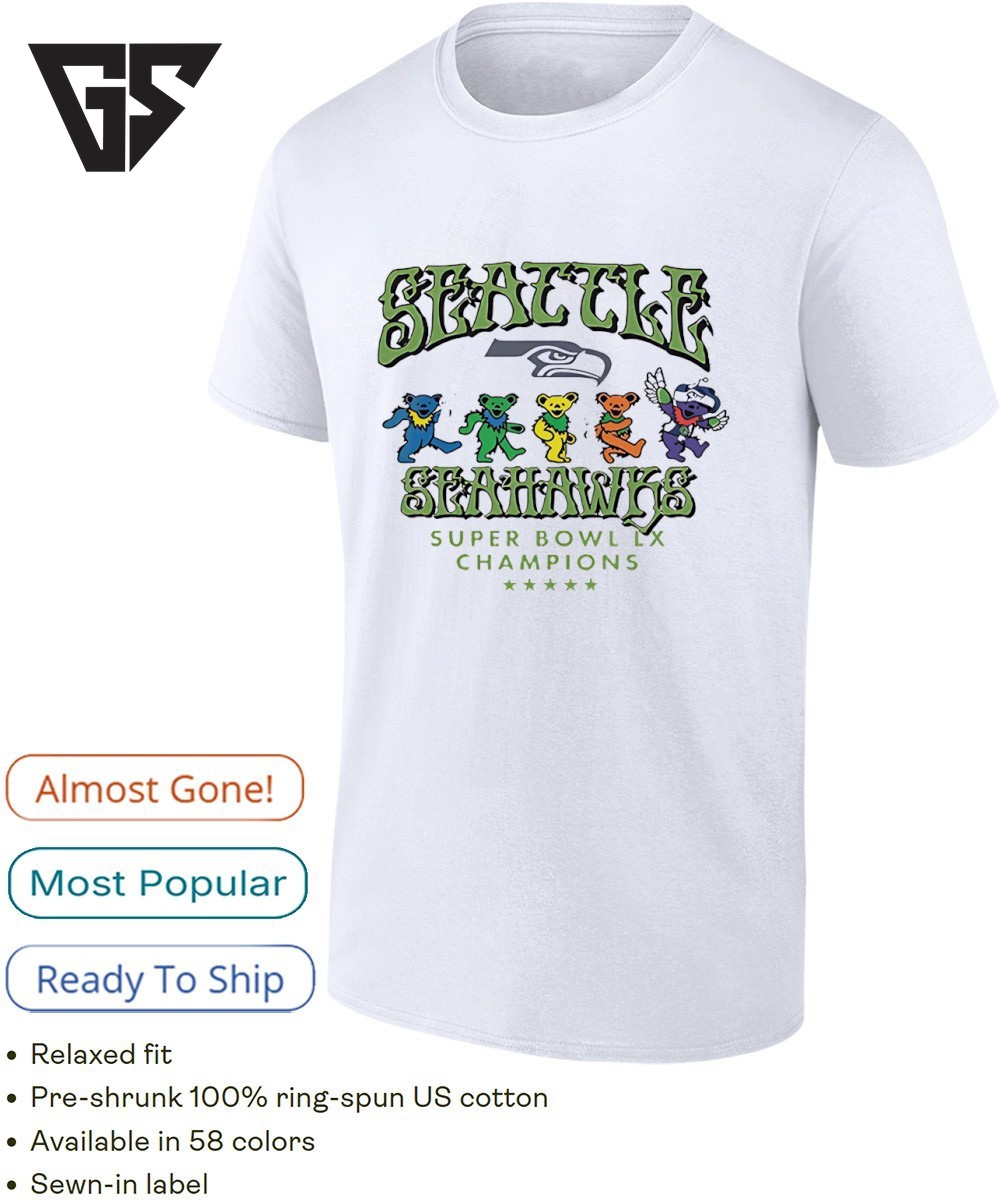 Grateful Dead Dancing Bears X Seattle Seahawks Super Bowl Lx Champions T-Shirt