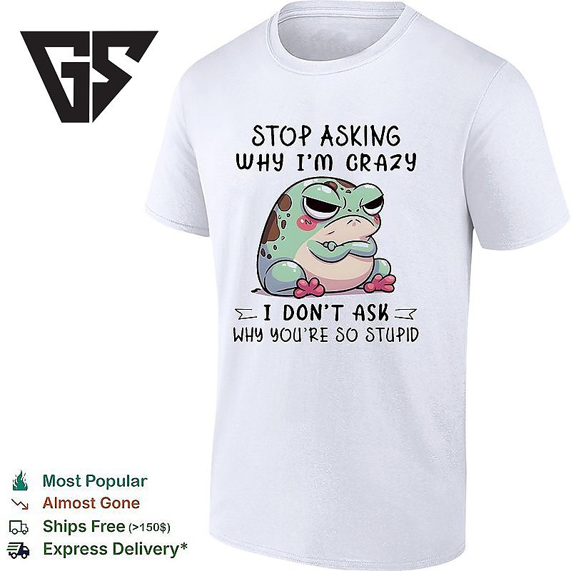Join the movement with our Grumpy Frog Stop Asking Why I’m Crazy Don’t Ask Why You’re So Stupid T-Shirt – the sports tee that’s taking social media by storm! This trending design captures the energy and passion that’s got everyone talking. Whether you’re at the game, hitting the gym, or just showcasing your athletic style, this viral sensation is your ticket to staying ahead of the curve.