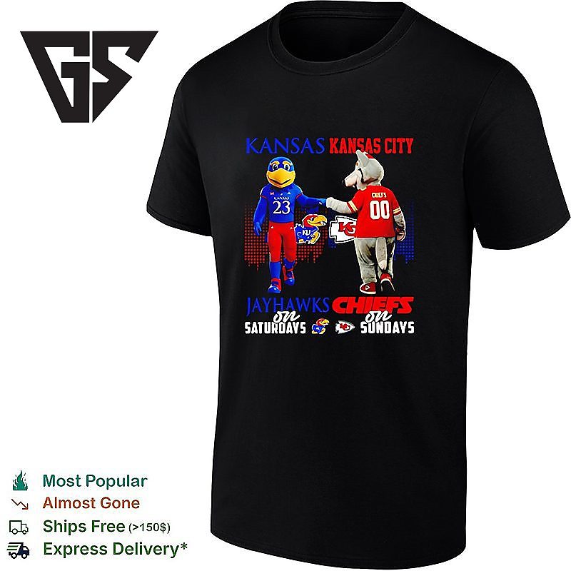 Join the movement with our Kansas Jayhawks Vs Kansas City Chiefs Mascots First Bump T-Shirt – the sports tee that’s taking social media by storm! This trending design captures the energy and passion that’s got everyone talking. Whether you’re at the game, hitting the gym, or just showcasing your athletic style, this viral sensation is your ticket to staying ahead of the curve.