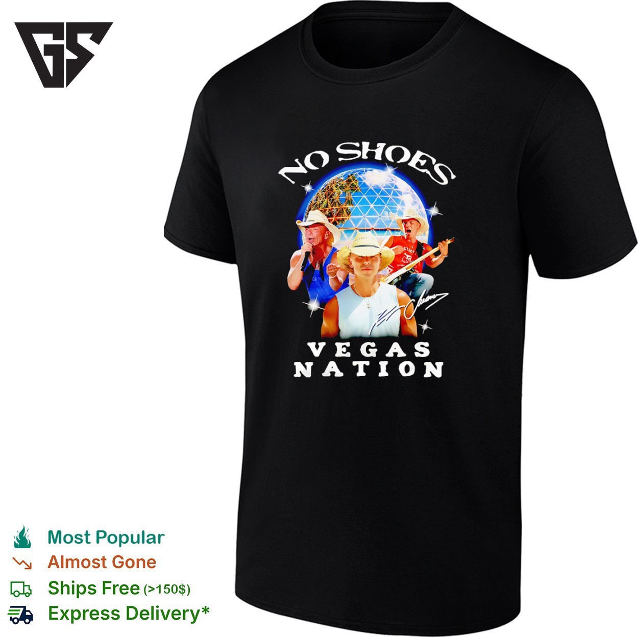 Be the first to review “Kenny Chesney Playing Music No Shoes Vegas Nation Signature Graphic T-Shirt” Cancel reply