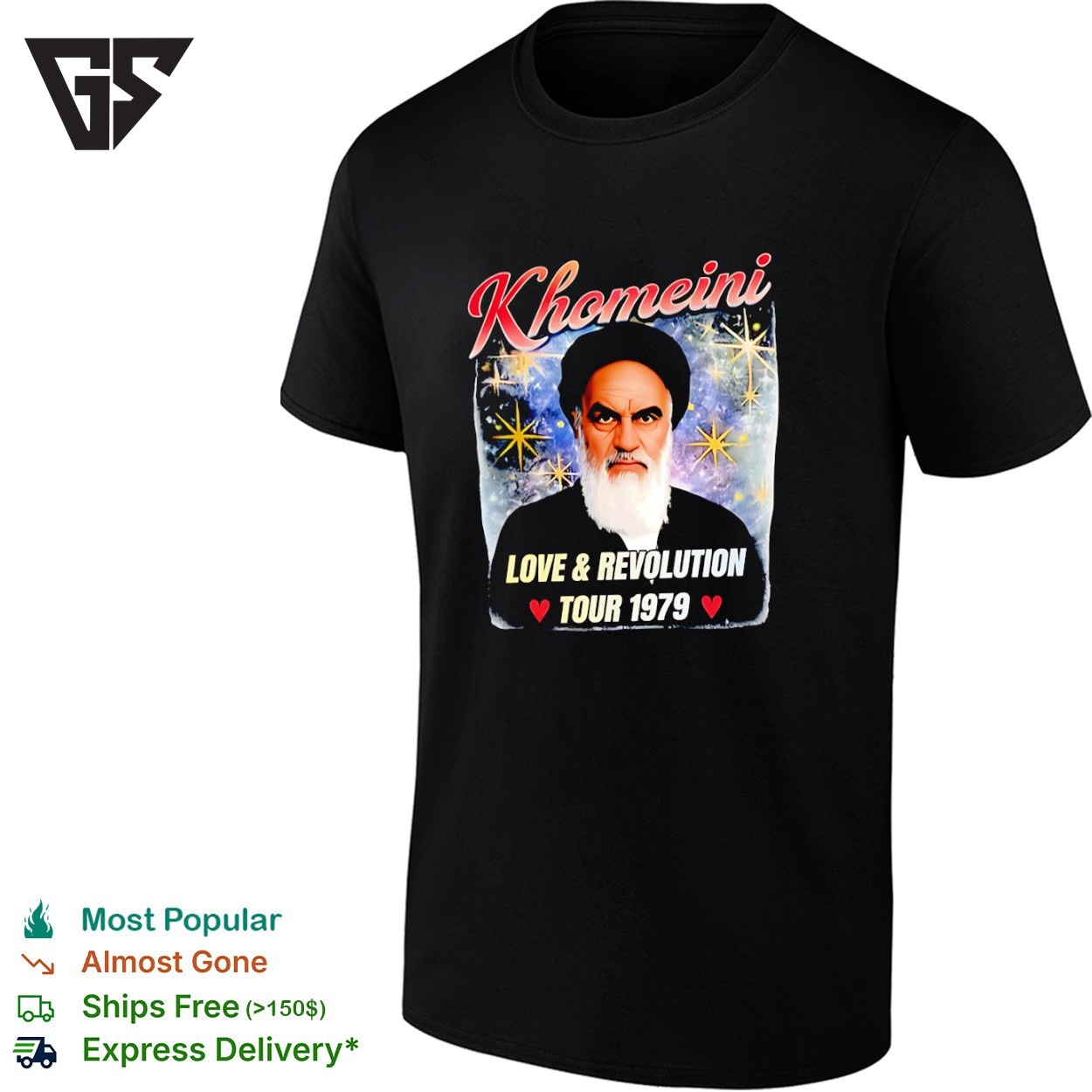 Be the first to review “Khomeini Love And Revolution Tour 1979 Graphic T-Shirt” Cancel reply