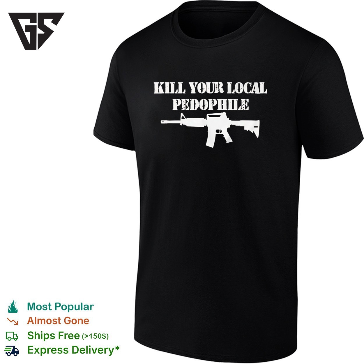 Join the movement with our Kill Your Local Pedophile Gun T-Shirt – the sports tee that’s taking social media by storm! This trending design captures the energy and passion that’s got everyone talking. Whether you’re at the game, hitting the gym, or just showcasing your athletic style, this viral sensation is your ticket to staying ahead of the curve.