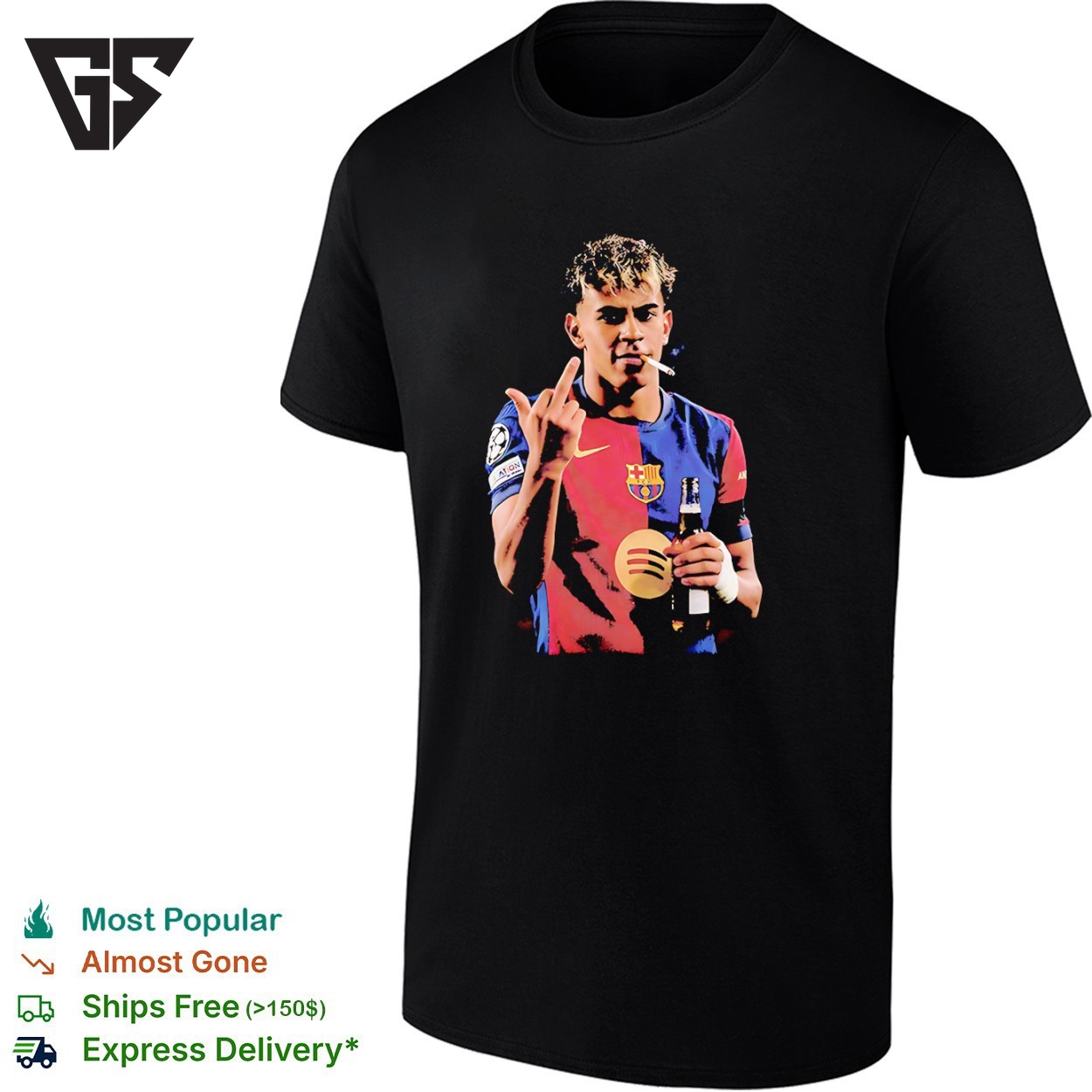 Be the first to review “Lamine Yamal Of Fc Barcelona Middle Finger Smoking And Holding Beer Can T-Shirt”