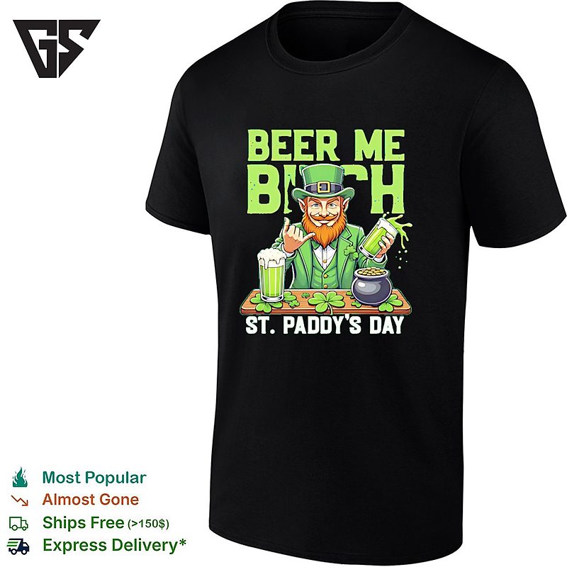 Leprechaun Rock And Roll Hand Beer Me Bich St Paddy’s Day T-Shirt