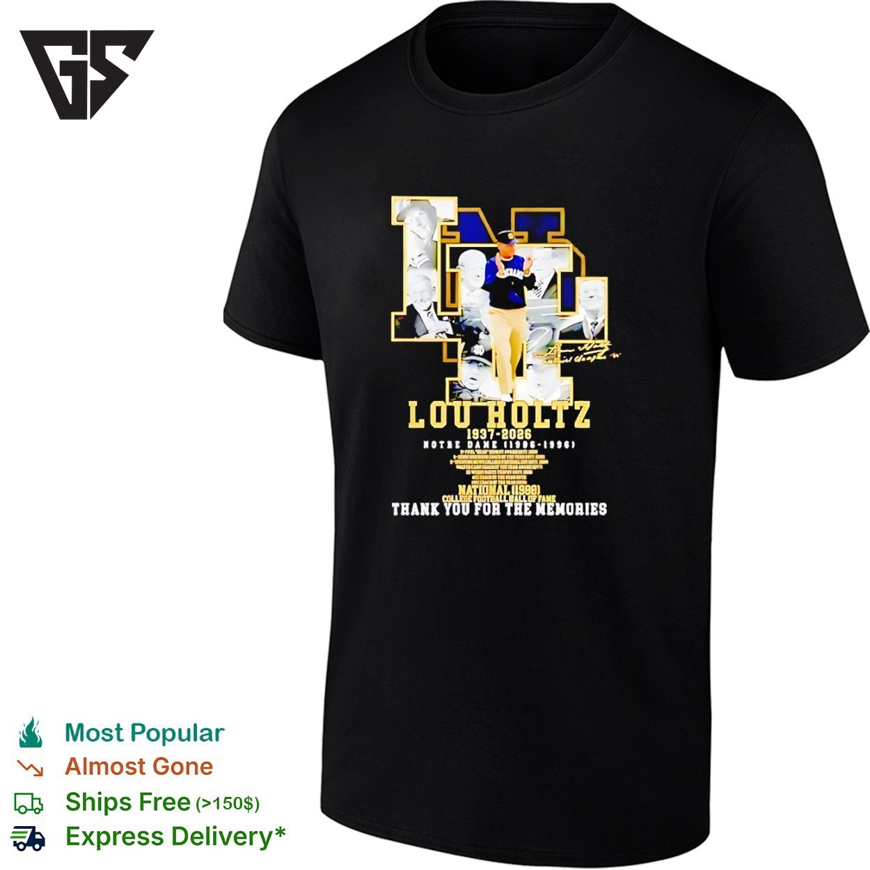 Be the first to review “Lou Holtz 1937 2026 Notre Dame Fighting Irish Thank You For The Memories Graphic T-Shirt” Cancel reply