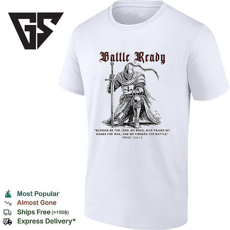 Be the first to review “Medieval Knight Kneeling Battle Ready Blessed Be The Lord My Rock Psalm 144 1 T-Shirt” Cancel reply