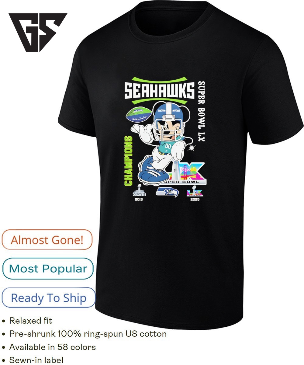 Mickey Mouse X Seattle Seahawks Super Bowl Lx Champions 2026 Graphic T-Shirt