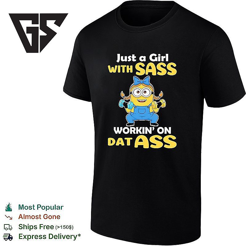 Join the movement with our Minion Weightlifting Just A Girl With Sass Working’ On Dat Ass T-Shirt – the sports tee that’s taking social media by storm! This trending design captures the energy and passion that’s got everyone talking. Whether you’re at the game, hitting the gym, or just showcasing your athletic style, this viral sensation is your ticket to staying ahead of the curve.
