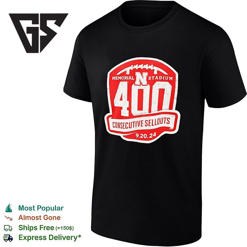 Nebraska Cornhuskers Memorial Stadium Consecutive Sellouts 400th 9 20 24 T-Shirt