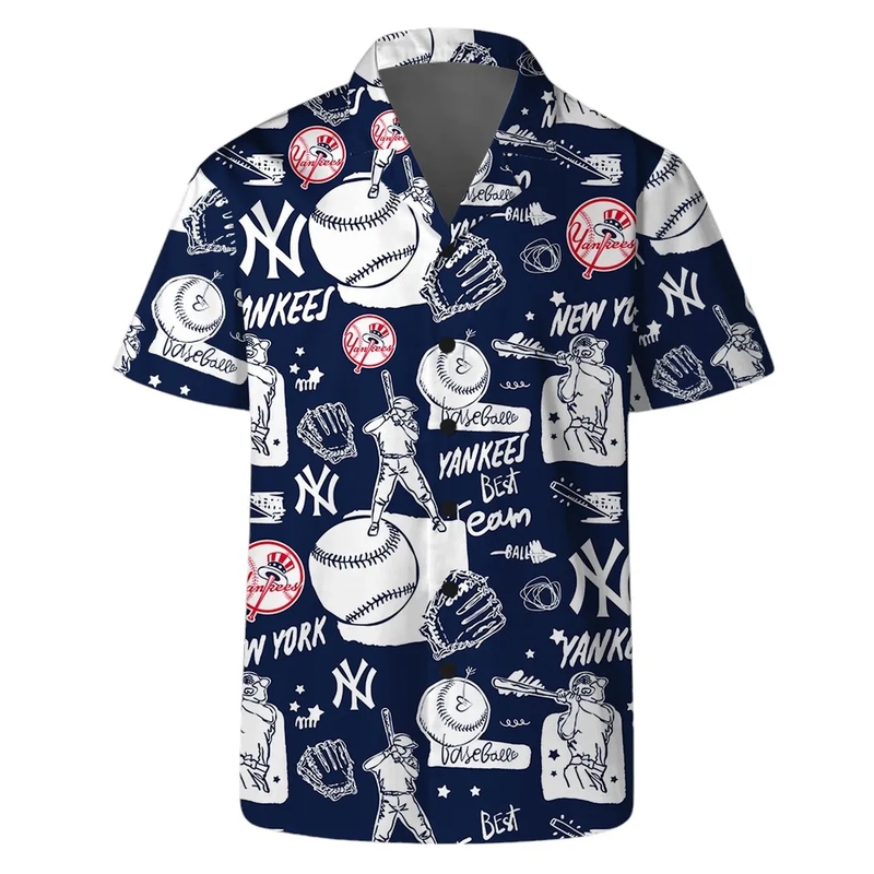 Show your team spirit with tropical flair in our New York Yankees Baseball Sketch Hawaiian Shirt! This vibrant Hawaiian shirt showcases New York Yankees colors and logos amid island-inspired designs. Perfect for game days or casual wear, it’s the ultimate way to combine comfort, style, and fan pride wherever you go.