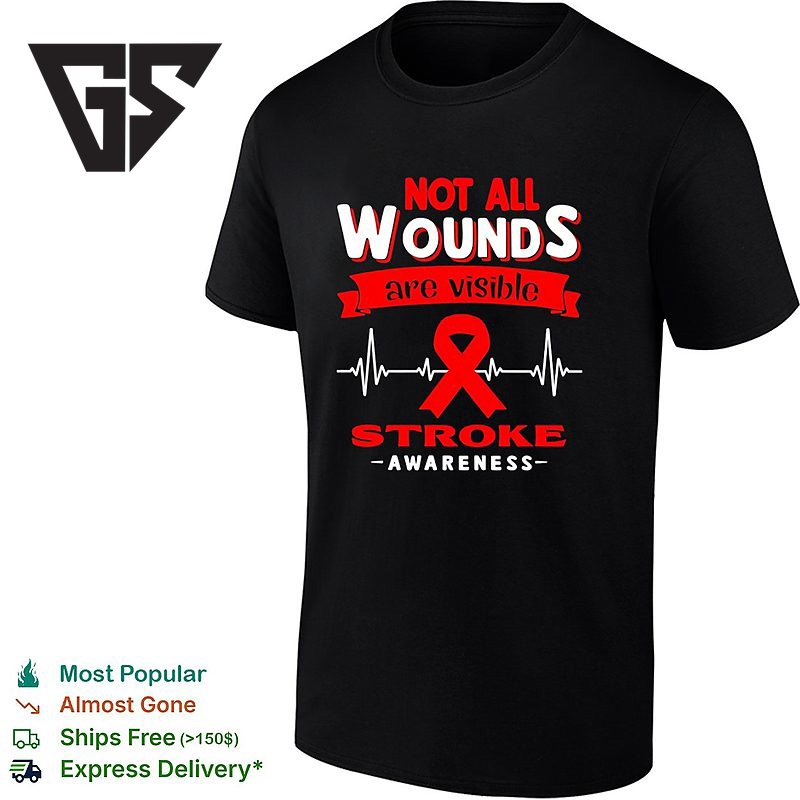 Be the first to review “Not All Wounds Are Visible Stroke Awareness Red Ribbon Heartbeat T-Shirt”
