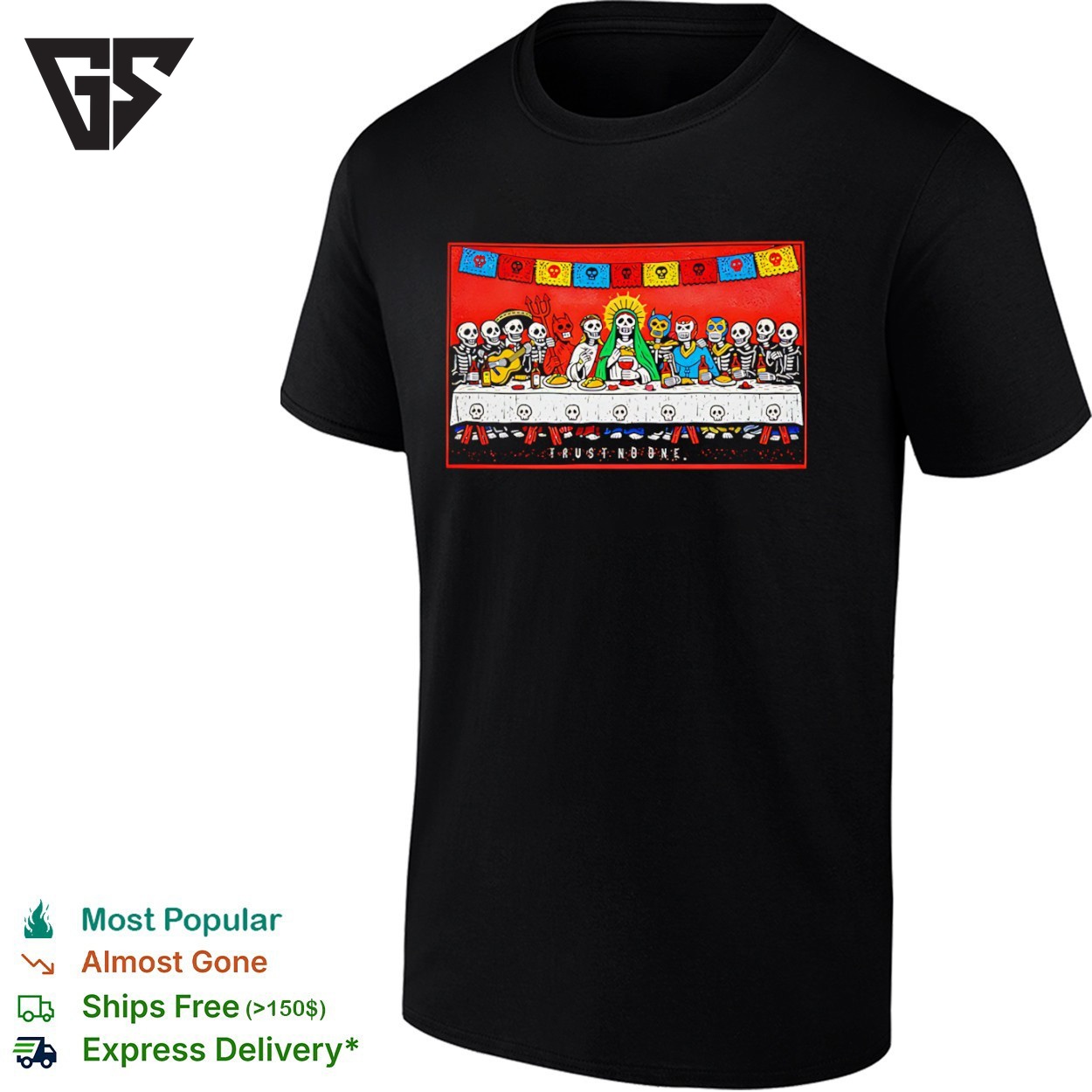 Be the first to review “Party Of Skeletons Trust No One Calacas T-Shirt”