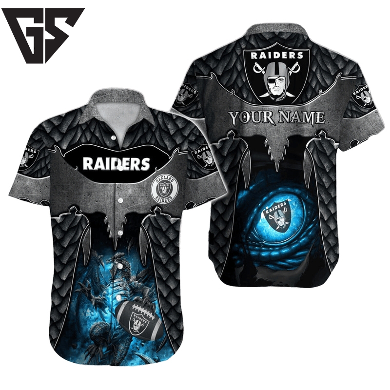 Show your team spirit with tropical flair in our Personalized Las Vegas Raiders Dragon Eye Hawaiian Shirt! This vibrant Hawaiian shirt showcases Las Vegas Raiders colors and logos amid island-inspired designs. Perfect for game days or casual wear, it’s the ultimate way to combine comfort, style, and fan pride wherever you go.