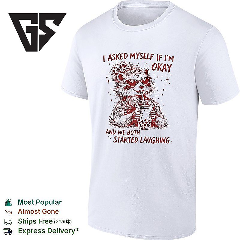 Join the movement with our Raccoon Drinking Milk Tea I Asked Myself If I’m Okay And We Both Started Laughing T-Shirt – the sports tee that’s taking social media by storm! This trending design captures the energy and passion that’s got everyone talking. Whether you’re at the game, hitting the gym, or just showcasing your athletic style, this viral sensation is your ticket to staying ahead of the curve.