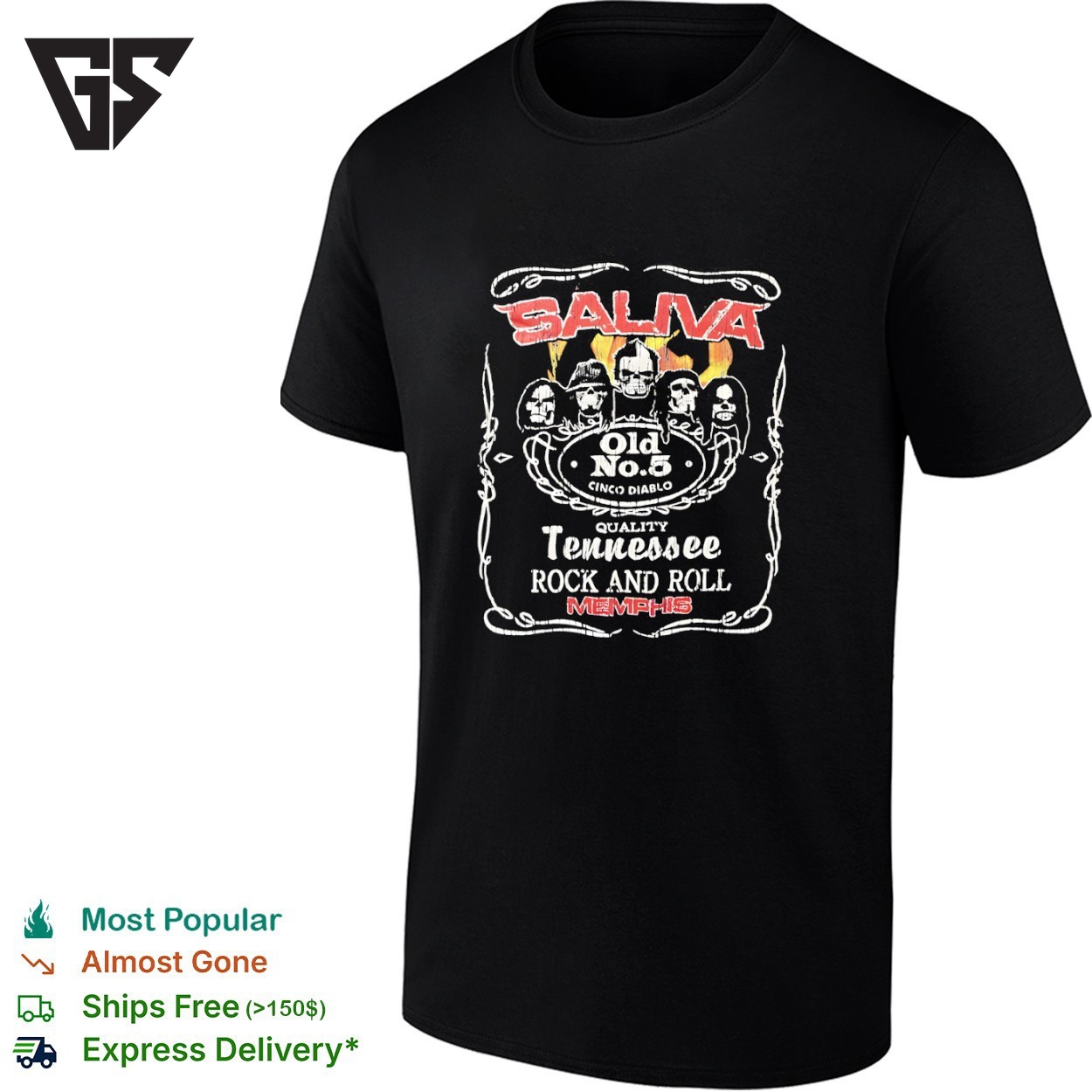 Be the first to review “Saliva Jack Daniel’s Old No. 5 Cinco Diablo Tennessee Rock And Roll T-Shirt”