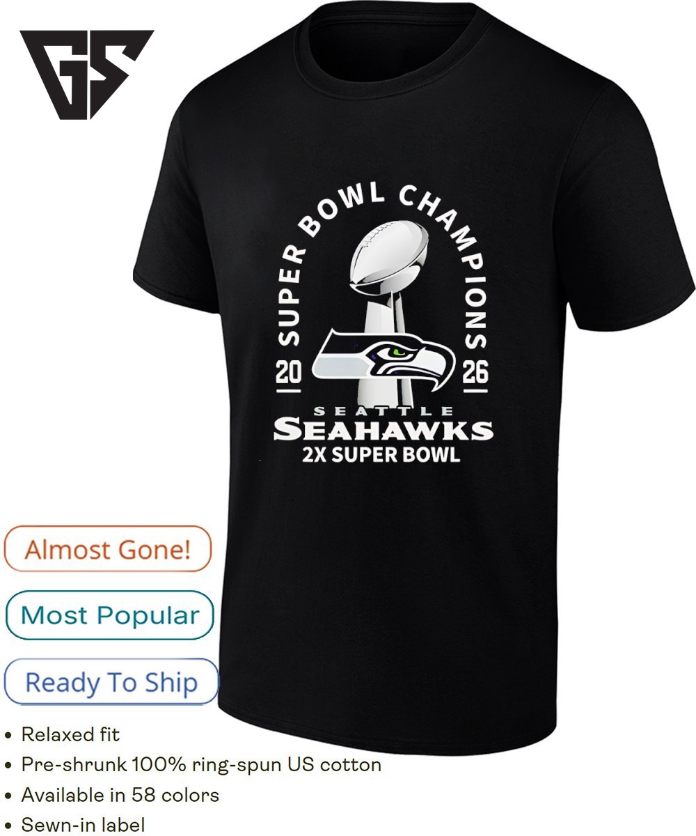 Seattle Seahawks 2x Super Bowl Lx Champions 2026 NFL Troyphy Center T-Shirt