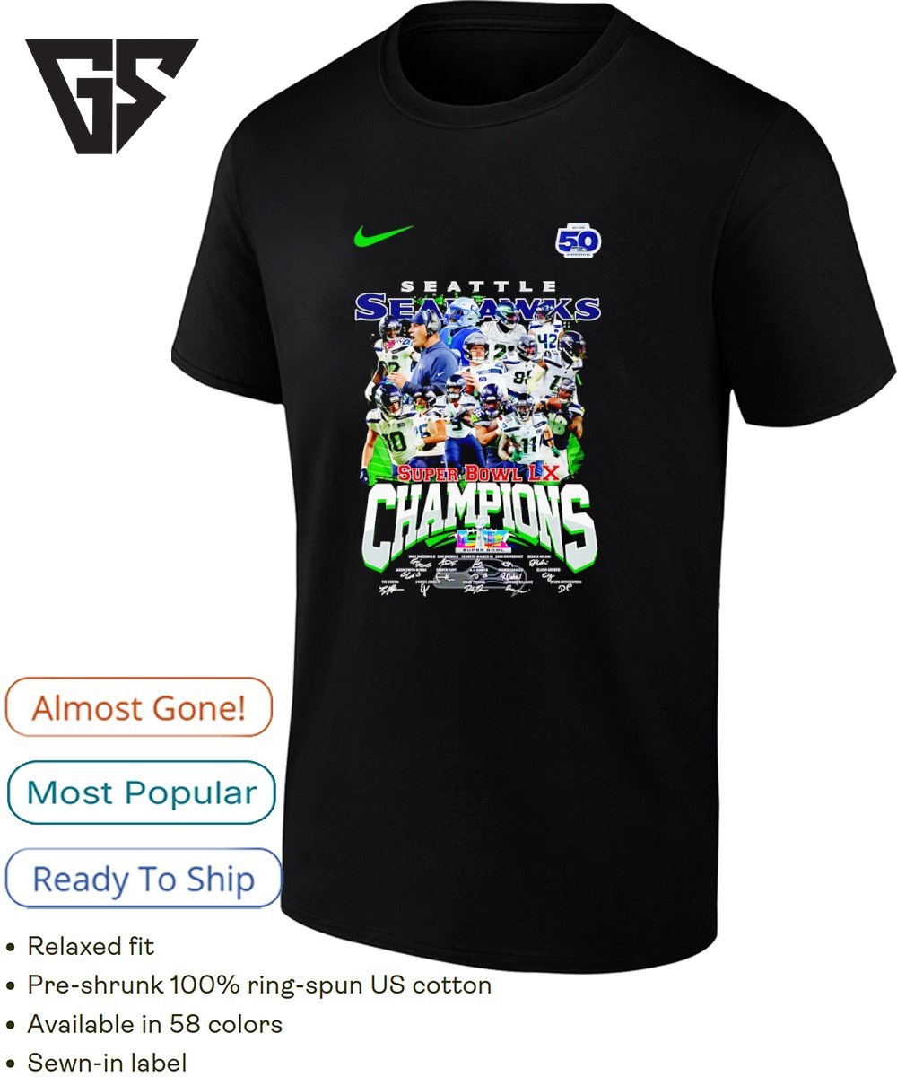 Join the movement with our Seattle Seahawks Coach And Players At Super Bowl Lx Champions 2026 Signature Graphic T-Shirt – the sports tee that’s taking social media by storm! This trending design captures the energy and passion that’s got everyone talking. Whether you’re at the game, hitting the gym, or just showcasing your athletic style, this viral sensation is your ticket to staying ahead of the curve.