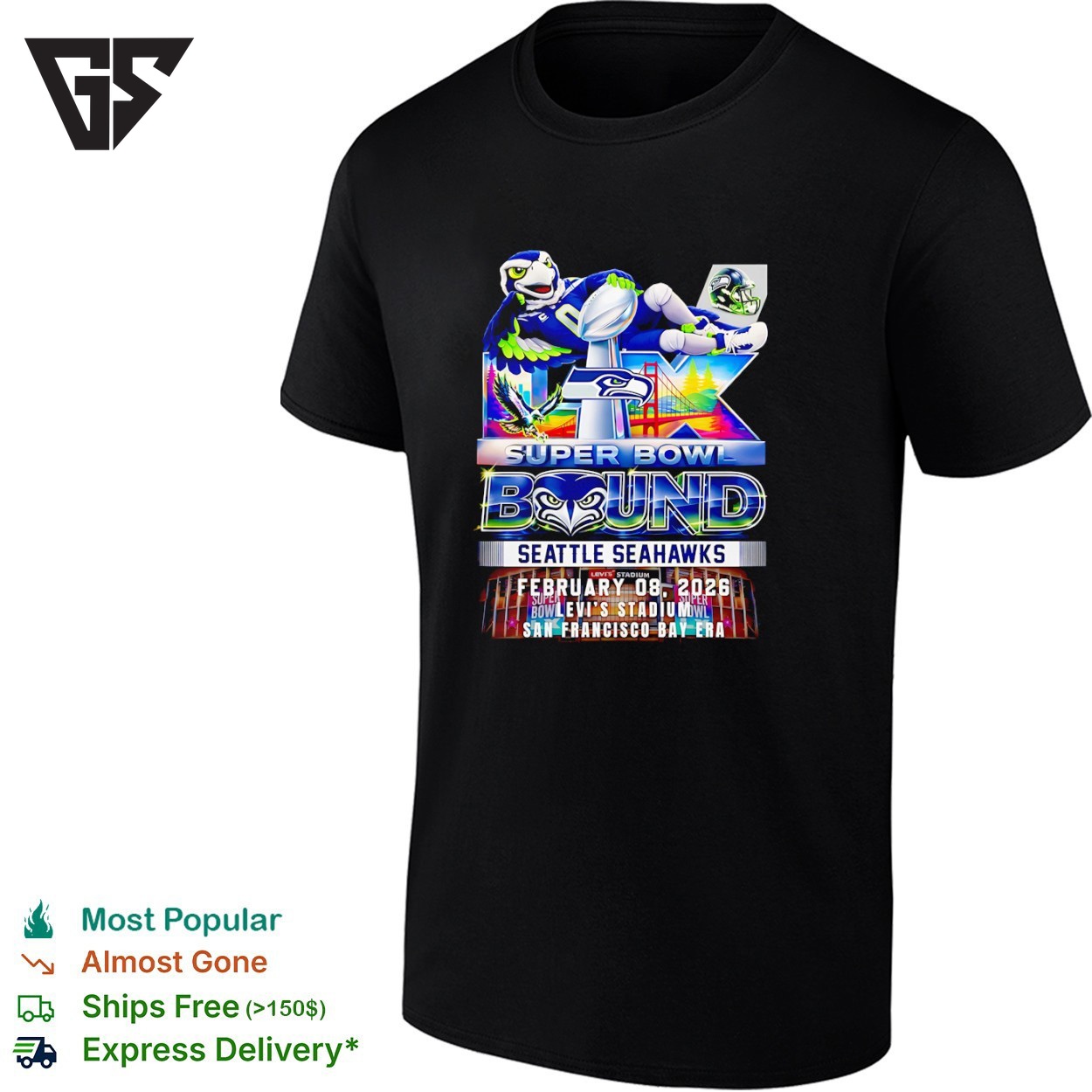 Be the first to review “Seattle Seahawks Super Bowl Lx 2026 Feb 8 Levi’s Stadium Trophy Center And Mascot T-Shirt”