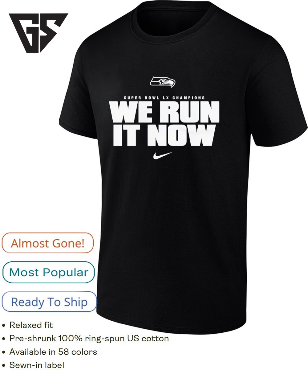 Seattle Seahawks Super Bowl Lx Champions We Run It Now Logo Up T-Shirt