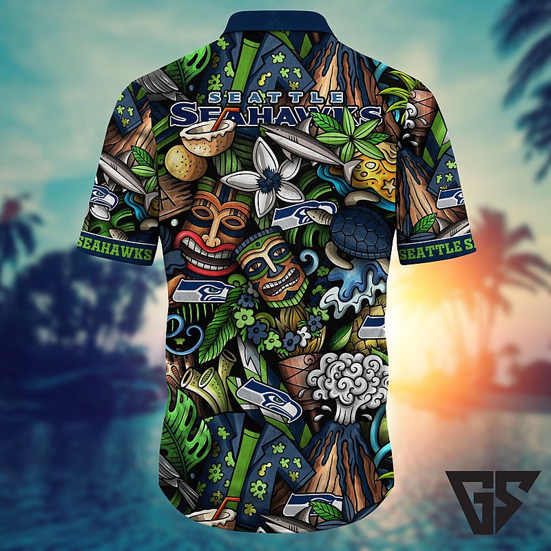 Show your team spirit with tropical flair in our Seattle Seahawks Tiki Tropics Hawaiian Shirt! This vibrant Hawaiian shirt showcases Seattle Seahawks colors and logos amid island-inspired designs. Perfect for game days or casual wear, it’s the ultimate way to combine comfort, style, and fan pride wherever you go.