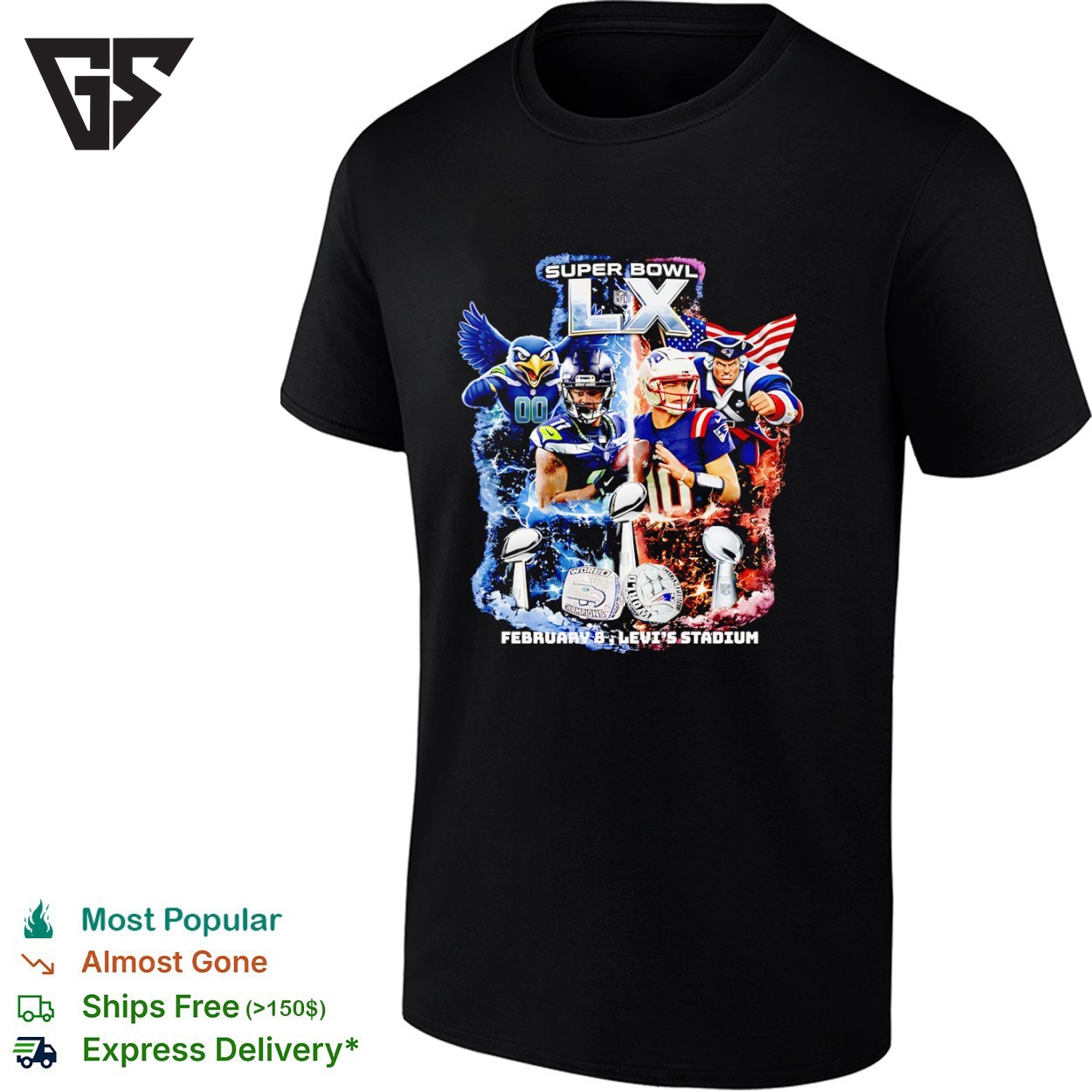 Be the first to review “Seattle Seahawks Vs New England Patriots Super Bowl Lx Feb 8 Levi’s Stadium Graphic T-Shirt”