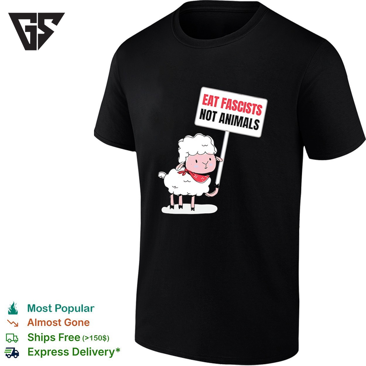 Be the first to review “Sheep Holding A Sign Eat Fascists Not Animals Funny T-Shirt”