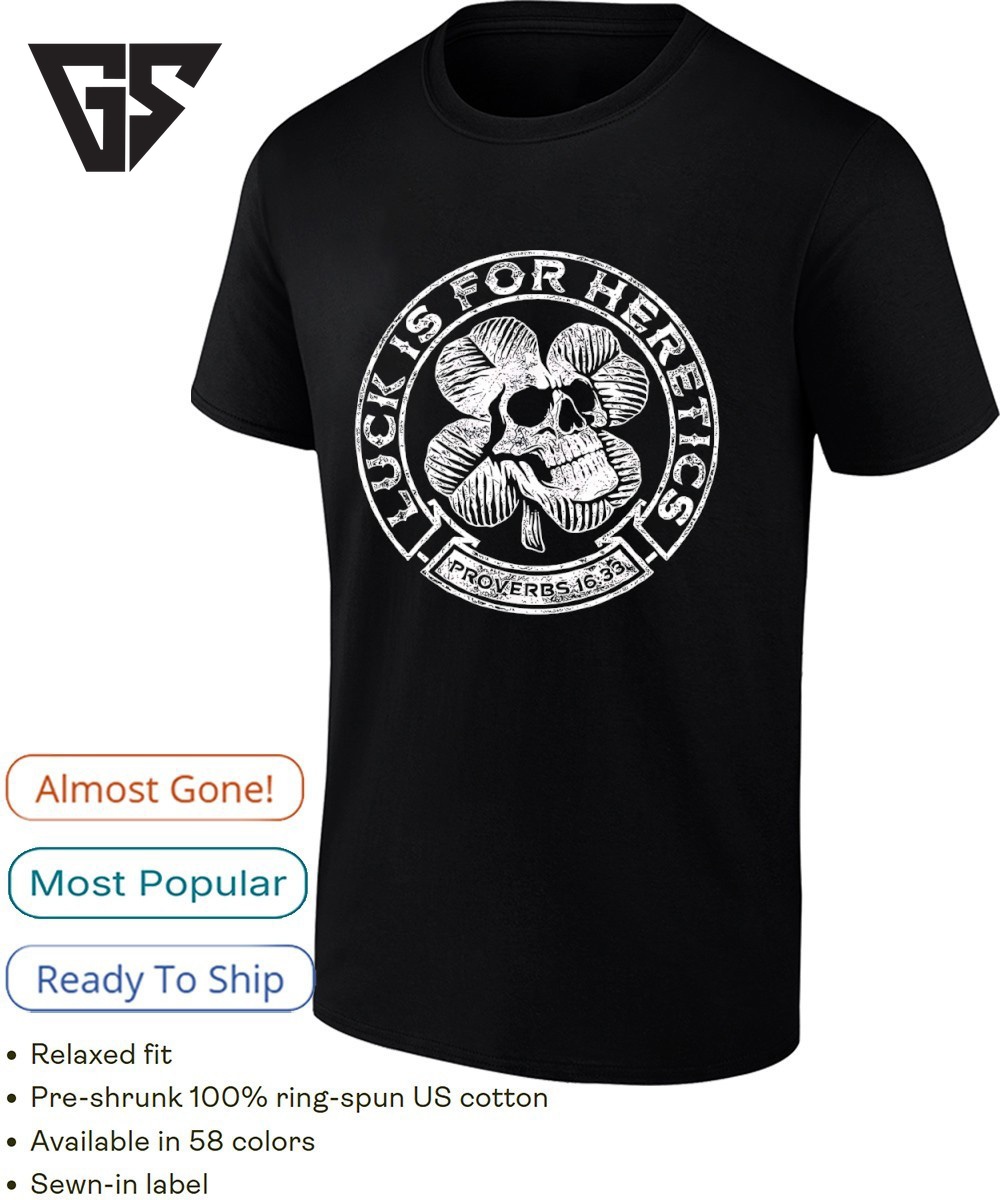 Be the first to review “St Patricks Day Skull Lucky Is For Heretics Proverbs 16 33 T-Shirt” Cancel reply