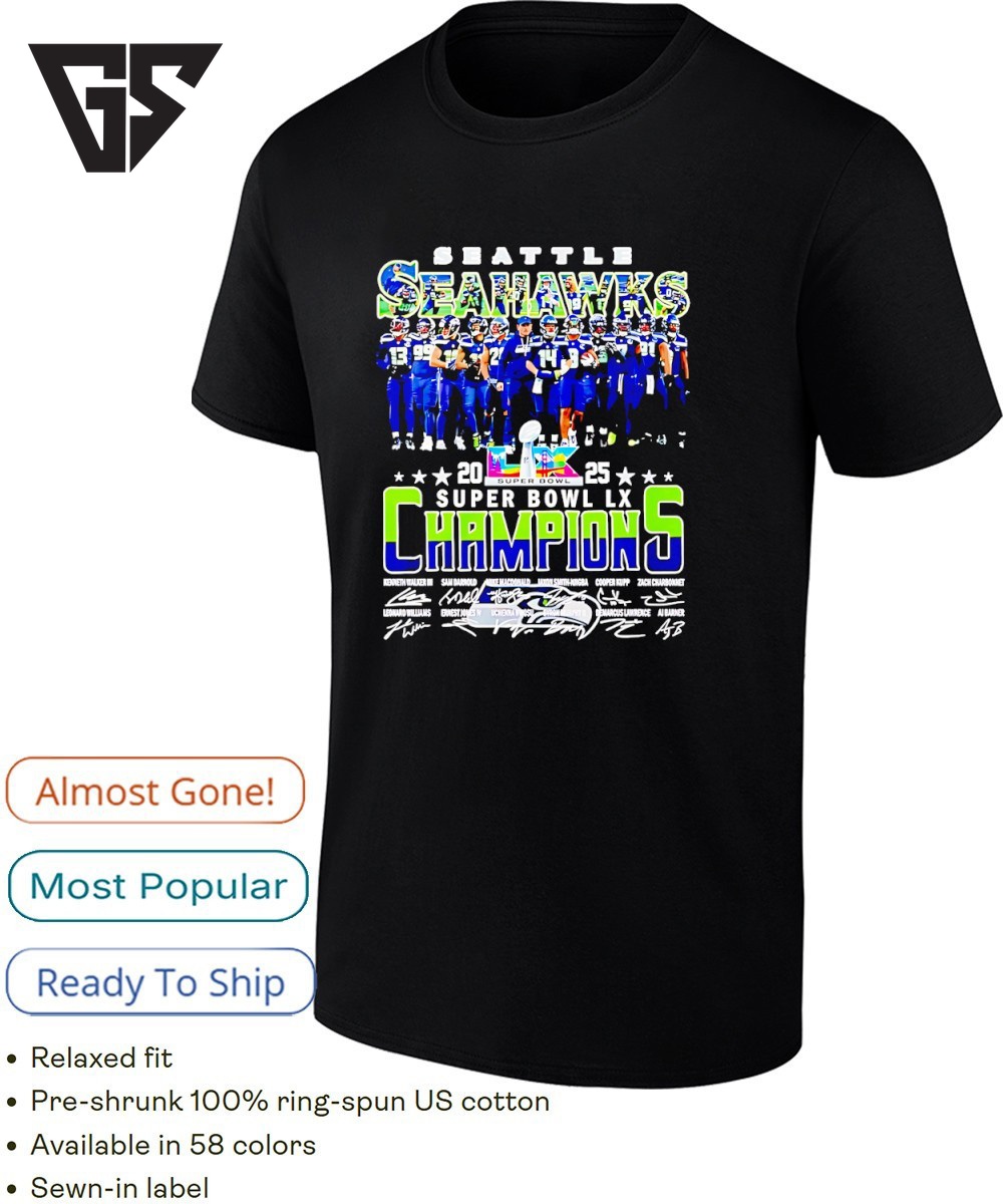 Be the first to review “Super Bowl Champions 2025 Seattle Seahawks Signatures T-Shirt” Cancel reply