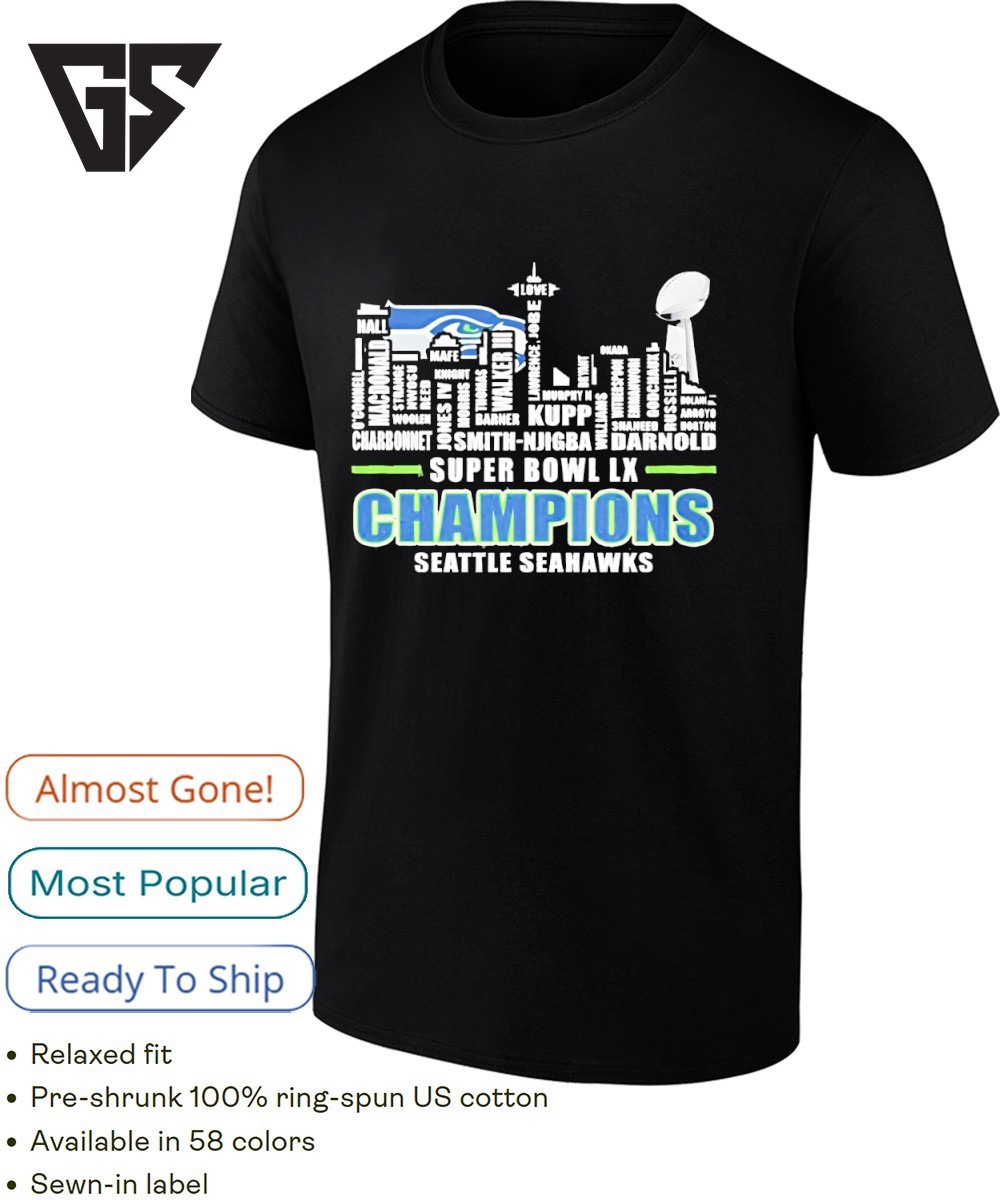 Super Bowl Lix Champions Seattle Seahawks Typo City T-Shirt