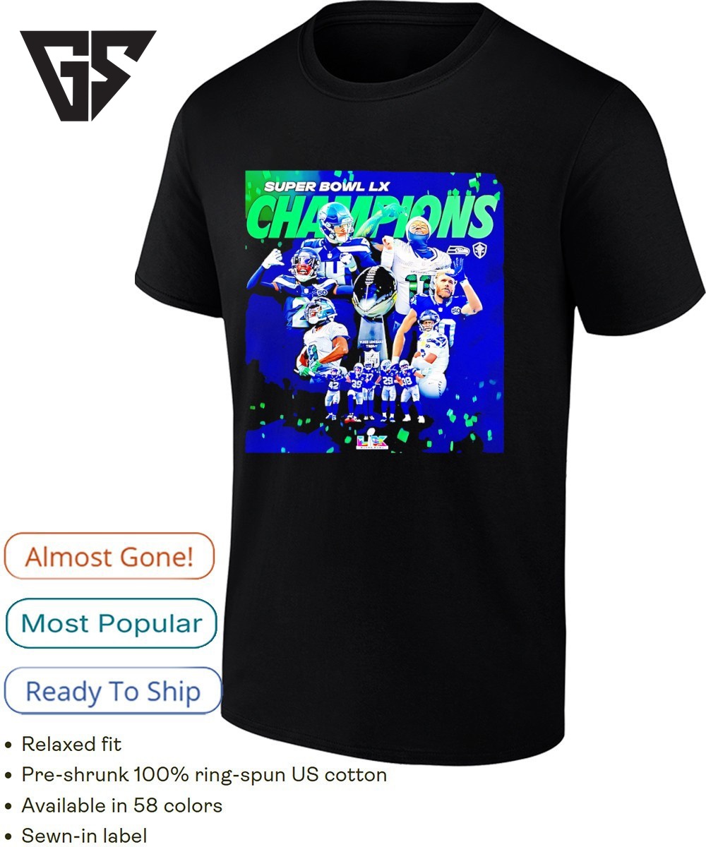 Be the first to review “Super Bowl Lx Champions Seattle Seahawks Graphic T-Shirt” Cancel reply