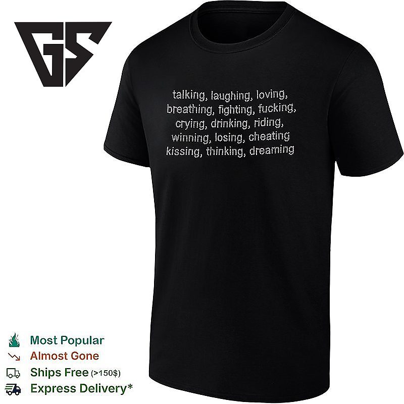 Join the movement with our Talking Laughing Loving Breathing Fighting Fucking Crying Drinking Riding Winning Losing Cheating Kissing Thinking Dreaming T-Shirt – the sports tee that’s taking social media by storm! This trending design captures the energy and passion that’s got everyone talking. Whether you’re at the game, hitting the gym, or just showcasing your athletic style, this viral sensation is your ticket to staying ahead of the curve.