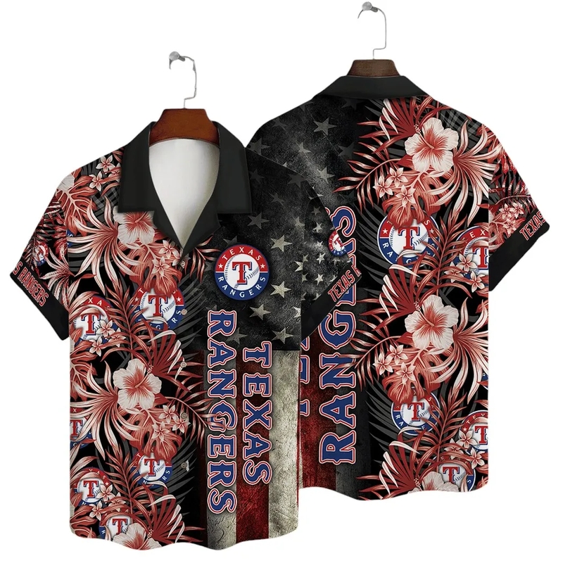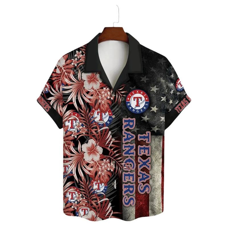 Show your team spirit with tropical flair in our Texas Rangers Stars & Stripes Floral Hawaiian Shirt! This vibrant Hawaiian shirt showcases Texas Rangers colors and logos amid island-inspired designs. Perfect for game days or casual wear, it’s the ultimate way to combine comfort, style, and fan pride wherever you go.