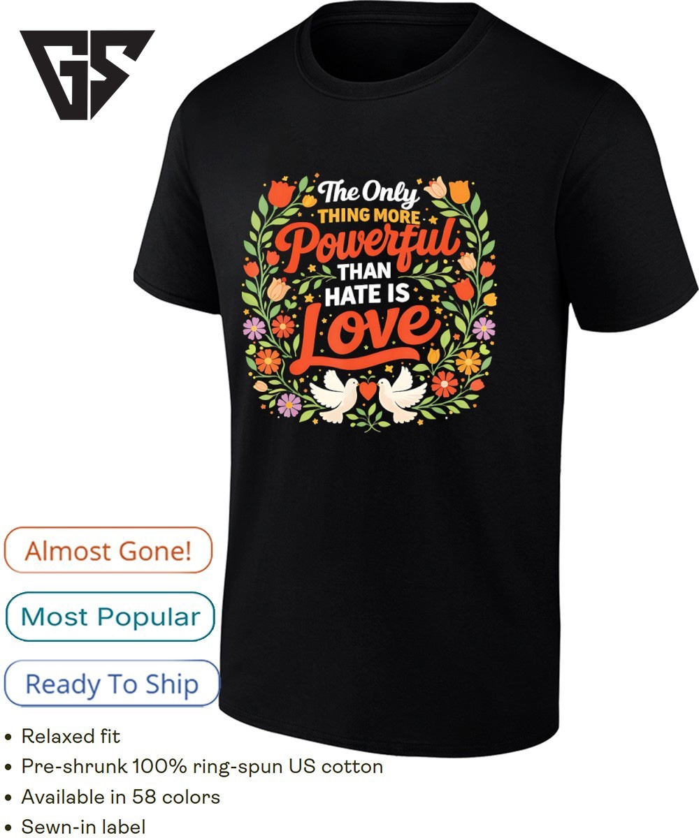 Be the first to review “The Only Thing More Powerful Than Hate Is Love Floral And Dove T-Shirt” Cancel reply