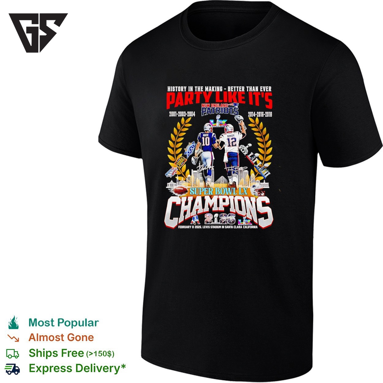 Be the first to review “Tom Brady And Drake Maye New England Patriots Super Bowl Lx Champions Party Like It’s T-Shirt”
