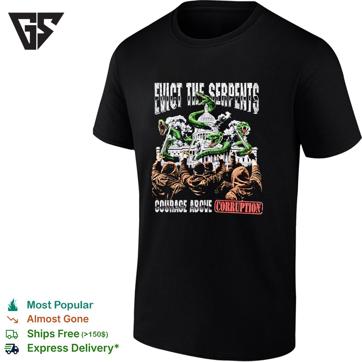 Be the first to review “Tommygmcgee Evict The Serpents Courage Above Corruption T-Shirt” Cancel reply